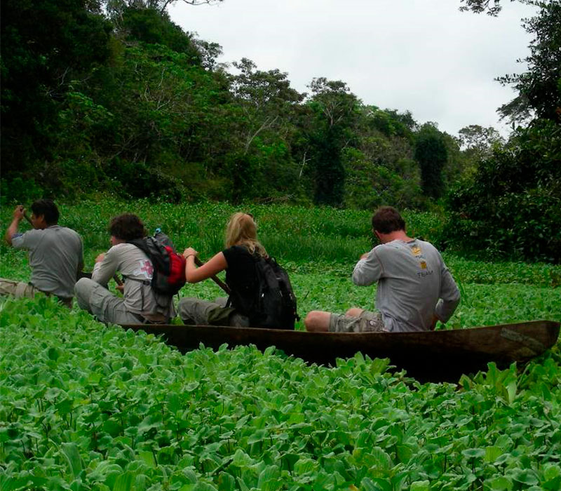 Exploración de riachuelos en canoa. Al final del arroyo, bajaremos de la canoa y caminaremos por los alrededores en busca de vida silvestre como el armadillo de nueve bandas (Carachupa), el oso hormiguero gigante (Oso hormiguero), roedores como el Paca (Majaz), Agouti (Añuje), entre otros. Siga una excursión para ir en busca de la nutria gigante (Pteronura brasiliensis) y la nutria neotropical (Lontra longicaudis), donde también podrá observar variedades de aves y reptiles.