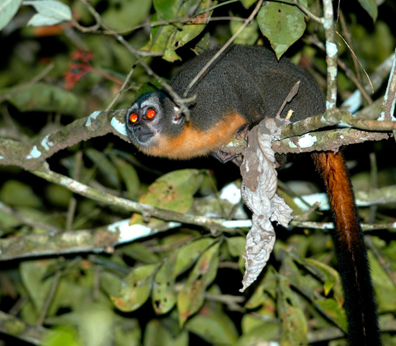 Por la tarde, caminata por la jungla hacia el bosque primario en busca de vida silvestre. observar las diferentes especies de animales en su hábitat como monos, aves, insectos, roedores, reptiles y anfibios.